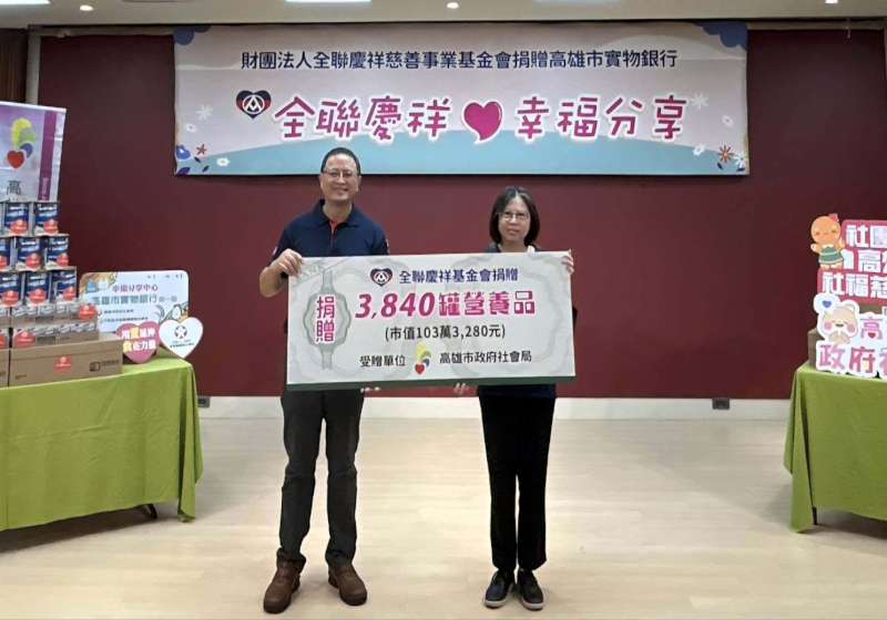 全聯慶祥慈善事業基金會捐贈市值逾100萬元營養品 挹注高市社會局實物銀行