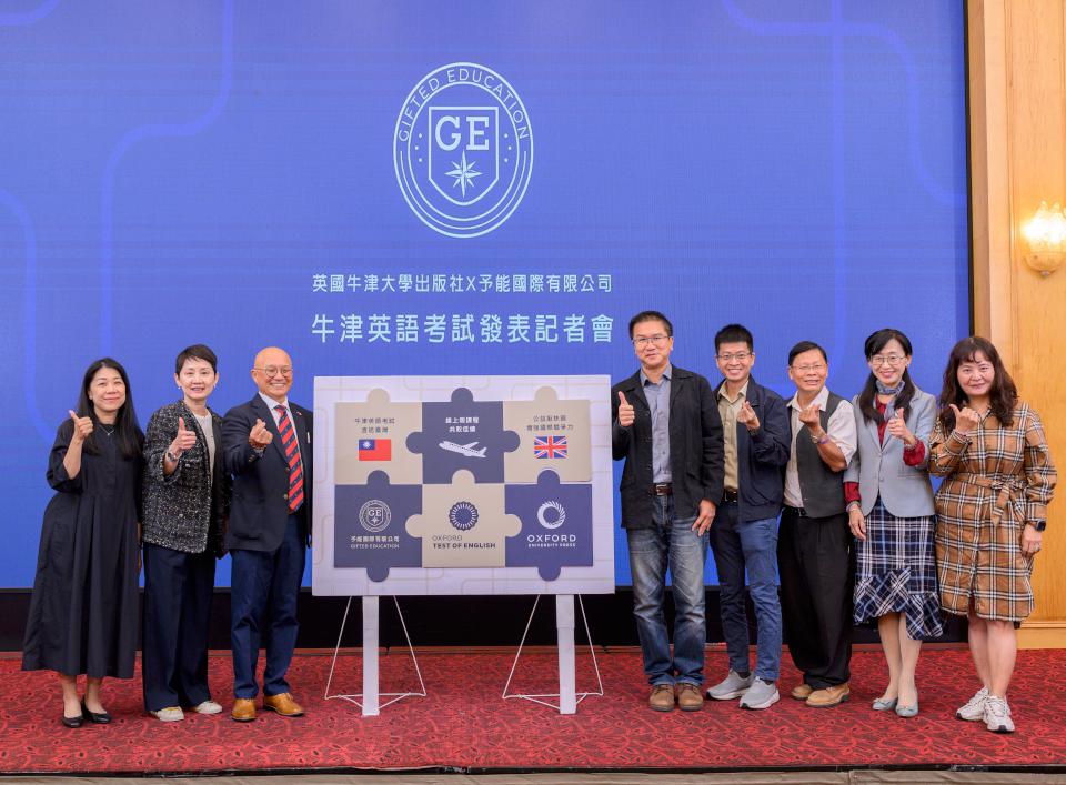 予能國際主辦、宇能外語文教機構協辦英國牛津大學出版社X予能國際牛津英語考試發表會12月2日舉行,予能國際創辦人、董事長陳信雄、牛津大學出版社亞太區總監蔡瑋等人貼上道具拼圖,宣布機構114年領先全台代理牛津英語成人及青少年認證考試,未來逐步擴大檢定據點,並續結合各校推動培訓、微課程等,並導入公益資源延伸偏鄉學校,同時新增海外留學諮詢、冬夏令營計畫,協助學生透過英語力圓夢。更多資訊可上予能國際官網查詢。圖/予能國際提供、文/高培德