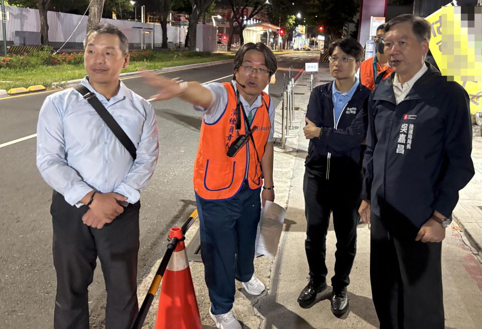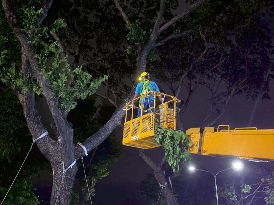 因應汛期及颱風季,高市捷運局、警察局、高雄捷運6月24日深夜前進大順路、聯興路口,演練樹倒阻礙輕軌列車通行狀況,捷運局長吳嘉昌說,市長陳其邁特指示落實防汛整備,嚴防側溝及下水道積淹水,維護市民生命財產安全。
