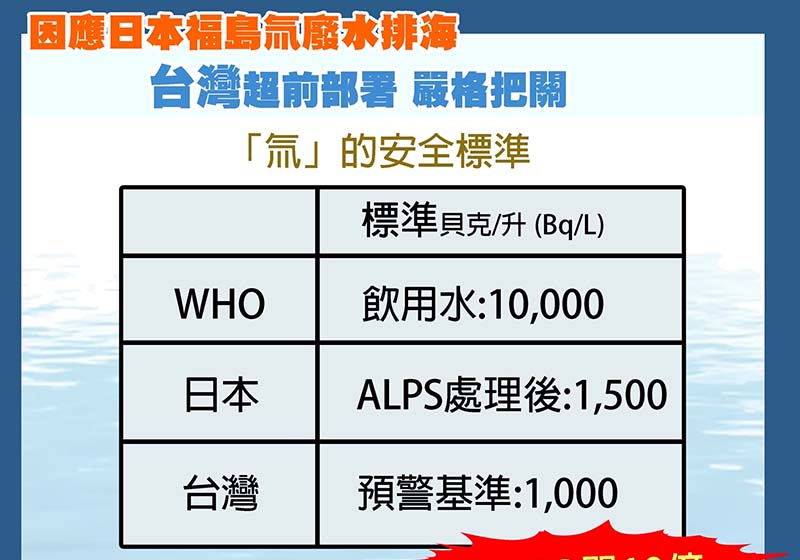 有關日本福島含氚廢水排放,台灣跨部會合作回歸專業監督,續秉持依據科學專業監測評估、參照國際安全標準嚴格監測及為國人安全與健康把關等原則,落實源頭管理、強化監測海域及海產輻射劑量、建立海洋擴散評估模式及資訊公開平台等配套措施,把關國人健康。圖/海委會提供、文/高培德