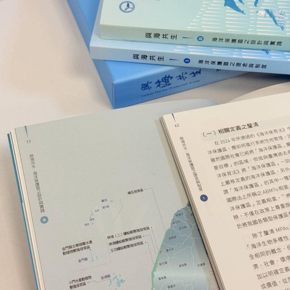 海洋保育法114年7月施行,海洋委員會海洋保育署續發行《與海共生Ⅱ:海洋保護區之設計與實踐》,深入台灣海洋保護區現場,透過在地案實例與治理經驗,描繪海保區從制度設計走向實質成效過程,即日起上架政府出版品門市及指定網路書店販售,海保署署長陸曉筠說,第一集記錄制度建構過程,2.0版聚焦制度活化。