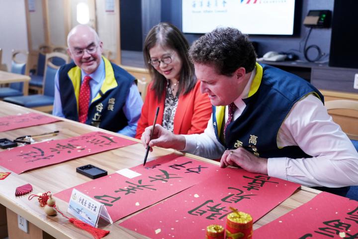 海洋委員會海巡署貨輪走私毒品查緝成果發表會1月30日在4000公噸級雲林艦舉行,查獲雜貨輪涉嫌走私近1300公斤毒品,海委會主委管碧玲、美國在台協會(AIT)處長谷立言、高雄分處處長張子霖等人見證,並體驗揮毫書寫「雲開見喜」、「林滿福氣」等春聯、包水餃(元寶),管碧玲說,台美扮演亞洲反毒戰略夥伴關係,攜手合推國際救援、海事安全交流、打擊跨境犯罪等,維持區域和平、安全與穩定。