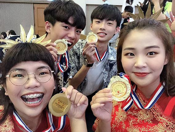 ▲全國總決賽,共有國內旅遊組20隊、來台旅客組15隊入選角逐,競爭相當激烈。該系參加國內旅遊組由梁晏庭、蔡佳穎、陳良典及羅意筑等4位同學組成,而來台旅客組則有廖恆晟、陳立穎、許瑋苓和王玉庭4位組隊參賽,兩隊分別以「中華民“果”農純鄉」,以及「台灣不私藝!Thai amazing!」作品,雙雙獲得金牌殊榮。