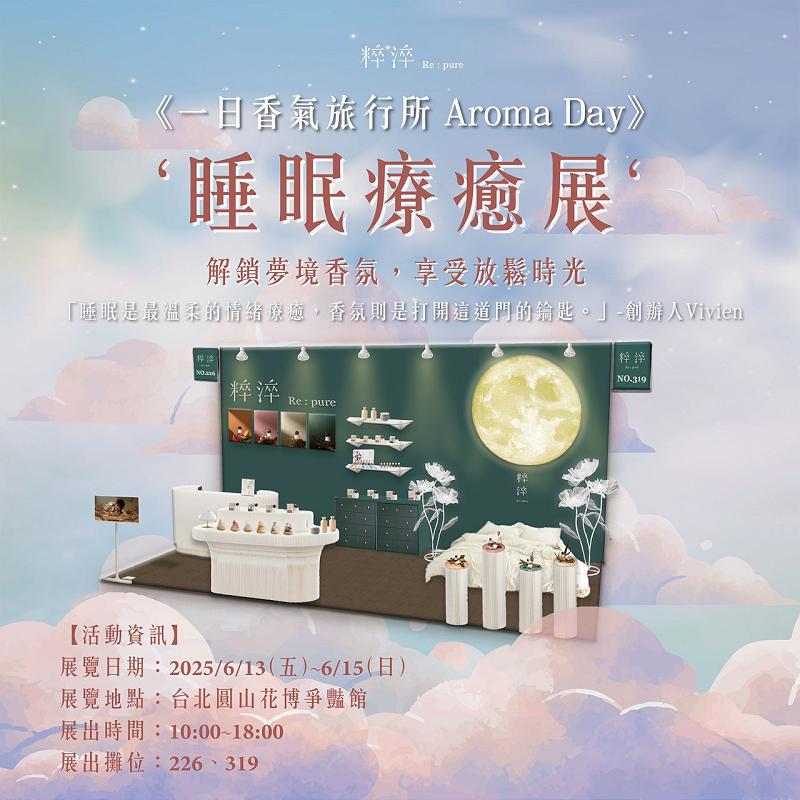 您是否曾被某種香氣深深吸引,甚至想將它帶入您的日常生活與人生之中? 2025年6月13日(五)至6月15日(日),粹淬 Re:pure 將在台北圓山花博爭豔館隆重舉辦《一日香氣旅行所 Aroma Day》2025 第三屆睡眠.療癒展,邀請您一同探索香氣的無限可能,開啟一場深度的身心療癒旅程。