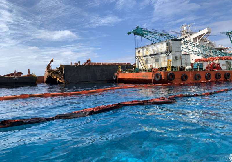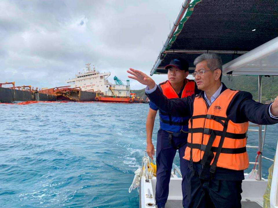 巴貝多籍貨輪BLUE LAGOON 10月1日擱淺台東縣蘭嶼鄉龍門港南側,交通部航港局會同海洋委員會海洋保育署等單位督促船主及船主互保責任保險業者,10月13日抽除逾300公噸殘油,並由第三方公正單位持續認證,抽油作業平台船10月17日返抵高雄港,並委託合格廠商協處殘油,完成防汙物資整備返回蘭嶼,清洗重油船艙,同時續監測船體情況,嚴防漏油發生。