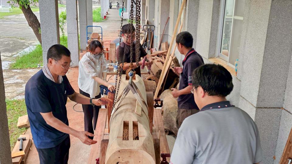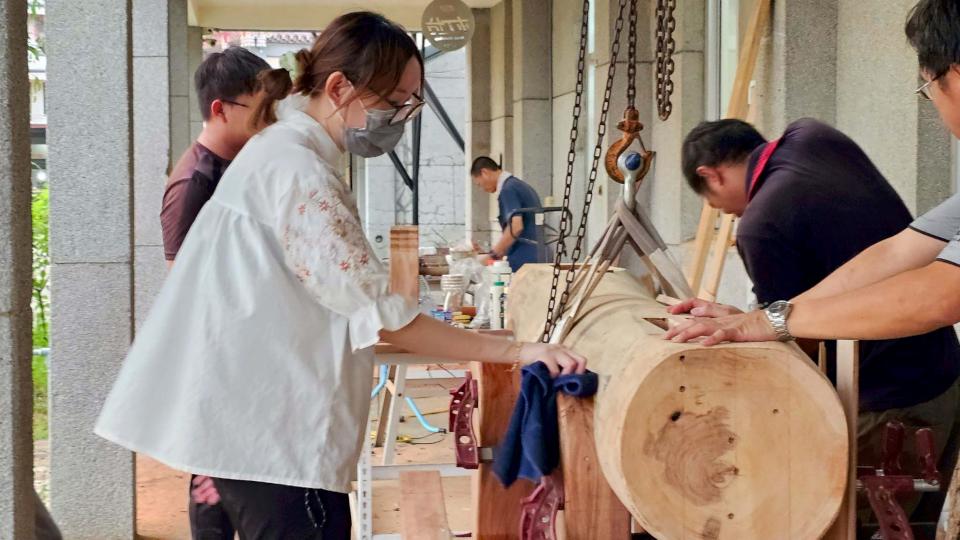 樹科大教師盧圓華說,難得參與計畫,轉化傾倒樹木變身創作,體現產學合作成果,學生實際參與精進專業,也引導大眾了解林木再生利用價值。