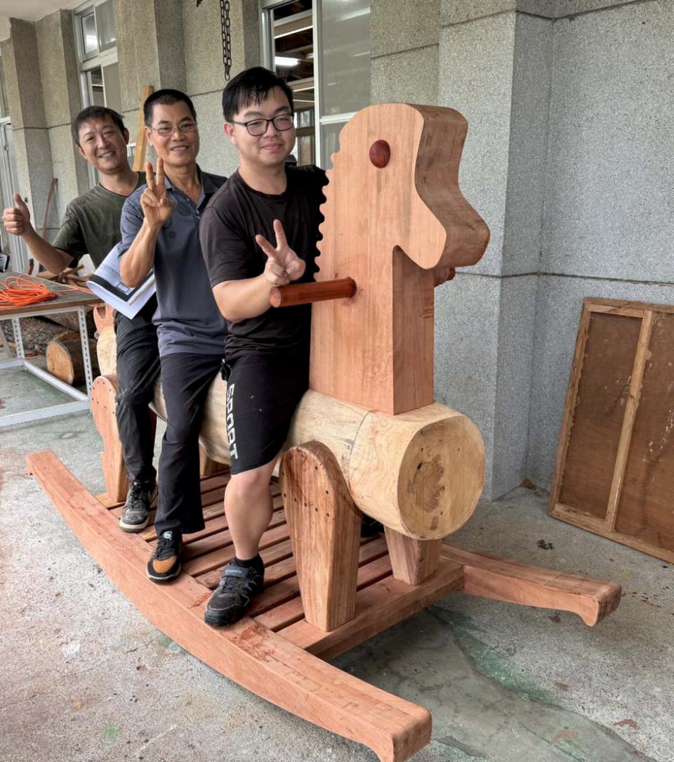 強颱山陀兒7月襲台,農業局攜手樹德科技大學打造1大型與2迷你風倒木木馬,9月27日和28日神農市集首次亮相並開放試騎。
