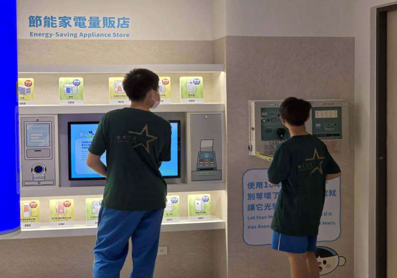 1F可領取節能闖關卡,成功挑戰獲得積分,從判斷冰箱溫度外洩、調節冷氣省電、濾網清洗時機、一級與五級能效標示差異,並透過掃碼體驗選購節能家,現場也設計用電隨堂考,互動問答揭示居家用電情形,同步開放體驗錄製串流音樂,用聲音分享節電技巧,並體驗主持節目樂趣,完成檔可攜回留念。
