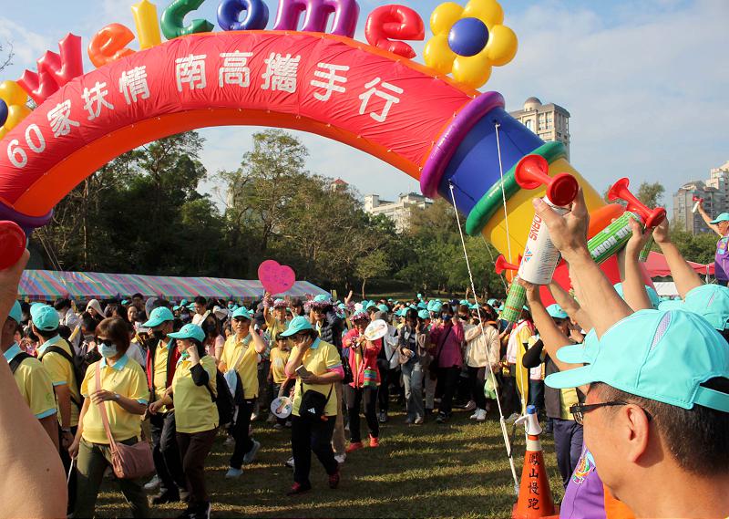 南高雄家扶中心「60家扶情南高攜手行—用愛守護‧希望童行」健走大會師12月6日在澄清湖風景區兒童樂園大草坪舉行,1500名扶助家庭成員及一般民眾參與,南家扶中心扶幼主委陳月珠、主任郭淑美等人鳴笛宣布活動起跑,吸引扶助家庭、善心人士及企業團體與一般民眾逾1500人參與,全程2.5公里,沿途設置攜手築夢、深耕希望、綻放未來、時光印記等10道趣味關卡,呈現中心服務在地歷程。