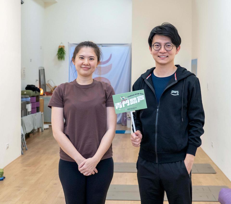 高市青年局長林楷軒訪視楠梓區青創店家根瑜伽工作室,在負責人蔡雯軒引導下體驗各項課程,從中理解經營理念與特色,林楷軒說,青年局一般型青創補助,支持青年投身健身房、瑜珈教室等運動健康產業,顯示青創朝健康生活及專業服務發展。