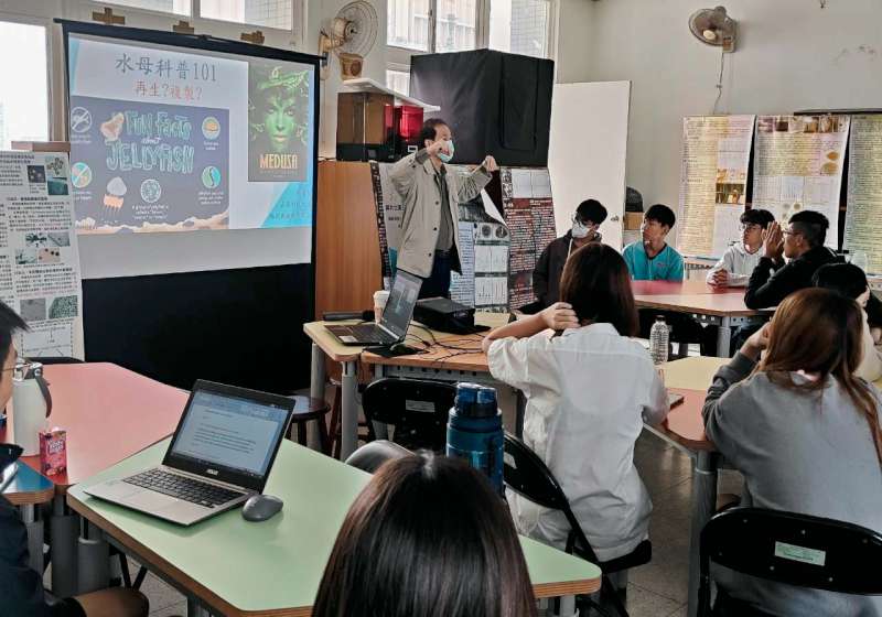 共備社群授課教師陳悠里說,校內六年一貫特色課程,帶領參賽學生從國中直升高中,透過長期觀察與反覆實驗,紀錄水母傷癒過程,並分析鹽度、光照、溫度與生理反應關聯性等環境條件,研究黏液刺絲胞毒性變化與生態意義,嚴謹科學探究歷程兼具關懷環境永續。