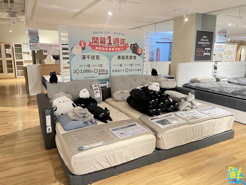 此外,宜得利家居在大立B館迎來開幕一週年慶,自即日起至9月18日為期近一個月推出會員專屬回饋活動。活動期間,單筆消費滿千即可獲贈百點會員點數,新加入會員再加碼贈送50點點數,會員點數1點即可折抵現金1元,贈點無上限。8月30日(六)還有黑貓見面會,現場與黑貓打卡即可獲得限量50元限量折價券。