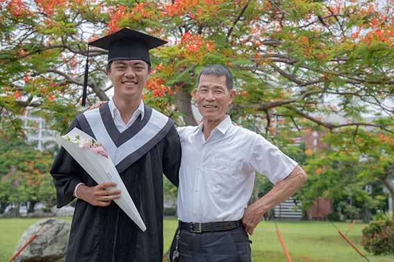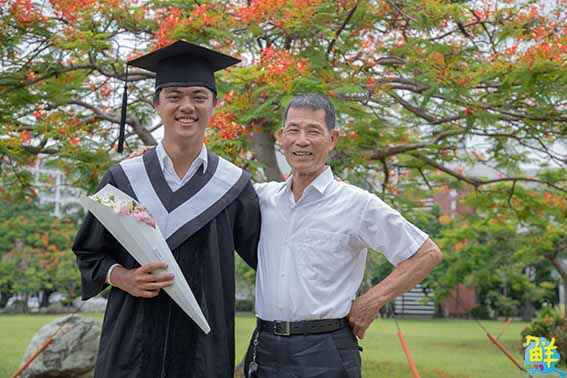 ▲辛苦扶養郭隆政長大的阿公欣喜孫子順利畢業。