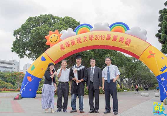 郭隆政說,從小對自己的不完美頗感自卑,能重拾信心肯定自我,除教會的啟發外,就是在嘉藥的學習與生活,讓他堅定積極地面對人生,並以熱愛生命態度去關懷、互勉和他一樣的身障人士。導師張瓊文提到,郭同學熱衷資訊科技領域,不僅高中時已擁有電腦軟體應用和網頁設計丙級相關證照,就讀嘉藥也考取Adobe Illustrator CS6及IC3Applications等專業證照,去年還和同學共同完成資管專題「軍火物品搬運機器人」,獲得台灣國際創新發明暨設計競賽社會組的銅牌獎,現在他又考上屏東大學資管系碩士班,一路走來努力上進精神值得嘉許,足堪所有學子表率。