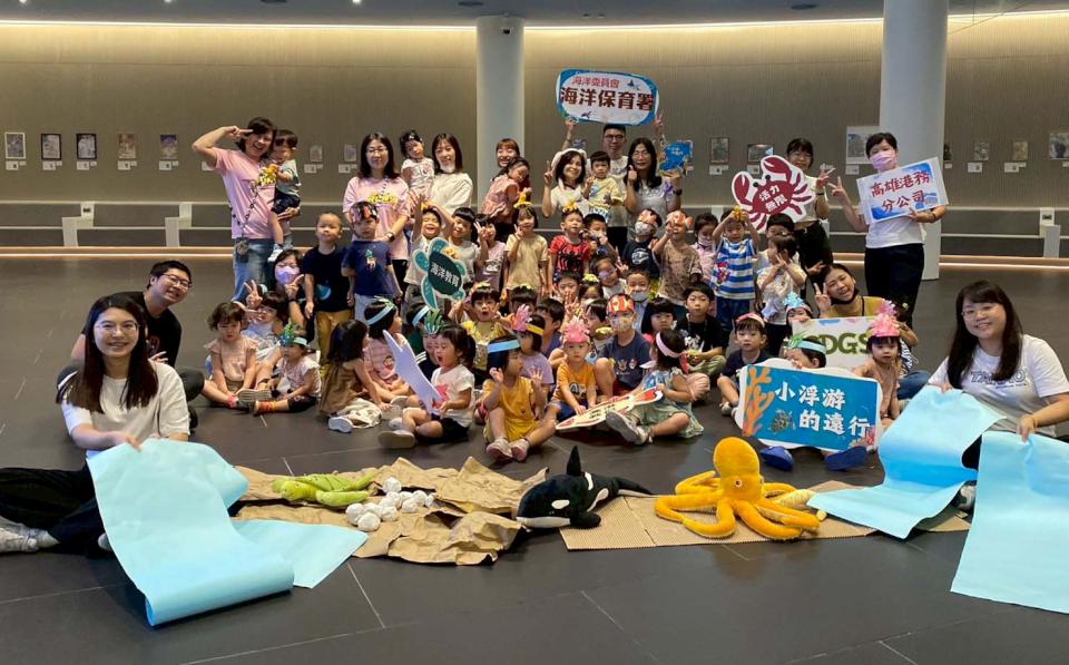 臺灣港埠協會攜手海洋委員會海洋保育署、臺灣高雄港務取材海保署出版繪本《小浮游的遠行》,策畫沉浸式海洋教育行動劇,引導2至6歲孩童化身小海龜,完成產卵孵化、返回大海、躲避沙蟹獵食、認識珊瑚、小蝦、章魚幼體,巡迴臺灣港務高雄港職場互助教保服務中心、高市鼓山區鼓山國小附設幼兒園、臺灣港務基隆港職場互助教保服務中心、國立中山大學員工子女非營利幼兒園等四地演出,過程穿插有獎問答,致贈台灣玩具圖書館協會提供全新及二手玩具,加深孩童印象。圖/臺灣港務提供、文/高培德