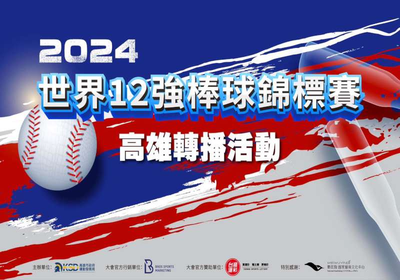 墨西哥、台灣及日本主辦2024年世界12強棒球錦標賽11月10日至24日舉行, 11月13日至18日進行中華台北、日本、韓國、古巴、多明尼加、澳洲等國B組預賽,每組6隊取前兩名晉級超級循環賽,高市運動發展局11月13日起在衛武營國家藝術文化中心榕樹廣場辦理5場台灣隊出賽轉播活動,現場設置400吋螢幕,並規劃街頭藝人表演互動及周邊小遊戲。