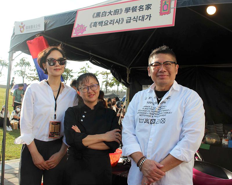 高雄流行音樂中心與韓國觀光公社合辦2024下酒祭feat.韓國活動12月7、8日下午3點至晚上10點在高流海風廣場舉行,韓國美食綜藝節目學餐名家李美英(圖一,右為高流執行長丁度嵐)示範教作辣炒豬肉及韓式拌麵,7日下午3點、5點及晚上8點及8日下午4點、6點及晚上8點各限量200份開放嘗鮮。