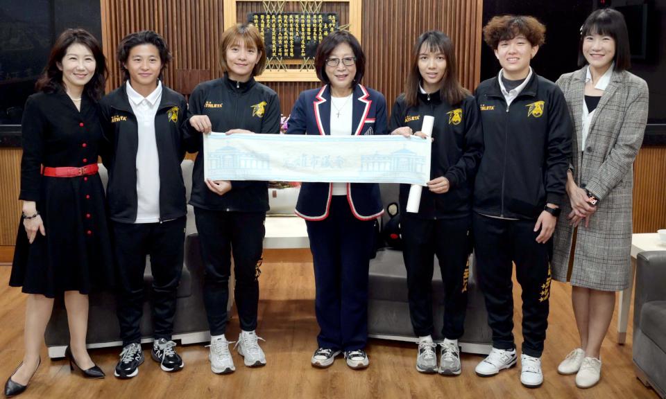 2024木蘭足球聯賽冠軍先鋒女足拜會贈球衣簽名球 議長康裕成邀支持在地球隊