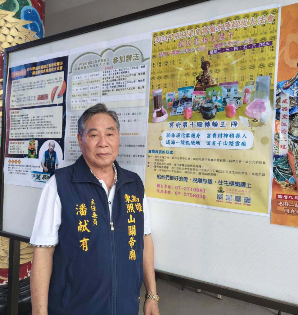 潘献有說,為期5天法會啓建祈安植福延壽禮斗道場、超拔九玄七祖、累世冤親債主、三軍將士英靈離苦得樂、拔渡失落嬰靈、寵物魂靈,佛力加持、安樂超生,拔渡地基主,提升位階,庇佑家戶平安,拔渡災害意外往生亡靈安定魂魄,7大壇城醮主斗首與14名副醮主擲筊,從近200名信徒中選出21名正副醮主,另壇城玉皇、關皇大帝、神佛、平安斗首等仍有缺額,開放信徒爭取,潘献有說,道教從愛與信仰出發,112年寵物壇,獲得近1000名飼主參與,各項神蹟令人稱奇,更多法會內容可上東照山關帝廟官網查詢。圖/高雄東照山關帝廟提供、文/高培德