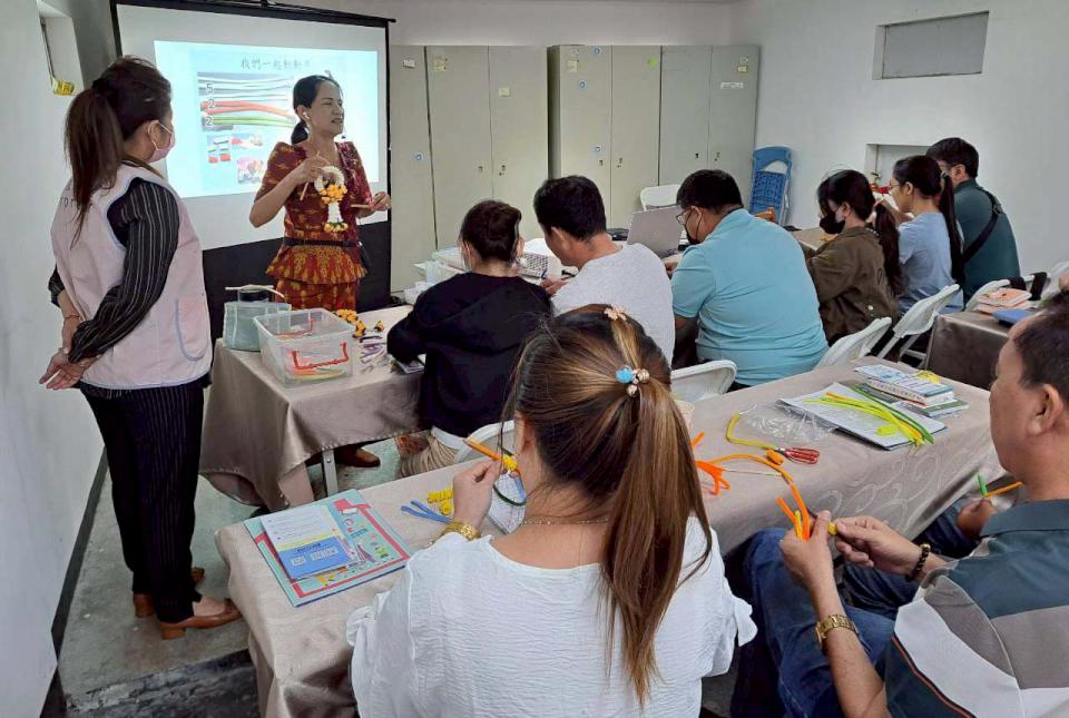 移民署南區事務大隊高市第二服務站10月23日辦理新住民家庭教育課程,邀請多元文化講師徐閤芸介紹三大節日柬埔寨宋干節(潑水節)、亡人節、送水節、婚禮習俗、觀光景點、特色美食柬埔寨酸湯、柬式春捲等文化,並指導學員體驗實作花環飾品樂趣,高市第二服務站主任陳盈智說,結合家庭教育與多元文化課程,協助新住民快速融入異鄉生活,促進各國族群互動交流,另因應移民署外籍人流管理新制上路,呼籲逾期居留新住民主動到案說明, 維護自身權益。圖/高市第二服務站提供、文/高培德