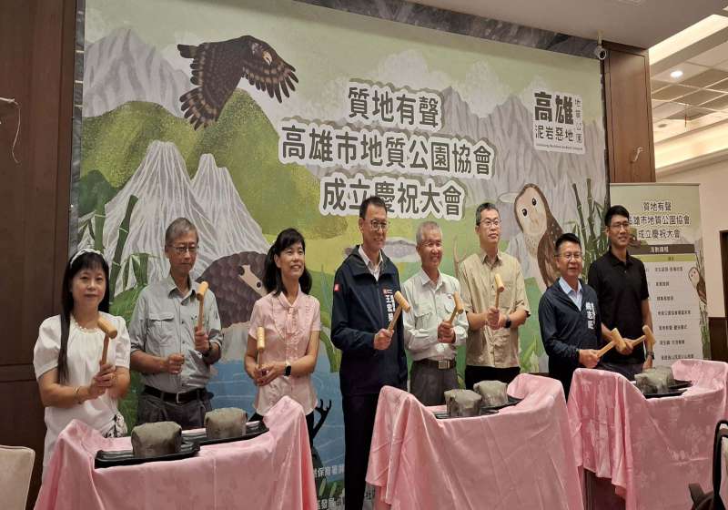 高市農業局輔導援剿人文協會、大崗山人文協會、內東社區發展協會、內南社區發展協會、古亭社區發展協會、金山社區發展協會、馬頭山自然人文協會、鹿埔社區發展協會、惡地農夫工作室及羅漢門文史尋根工作室等10單位籌組高市地質公園協會,10月27日在田寮區舉行成立慶祝大會,農業部林業及自然保育署專委黃信富、高市府副秘書長王宏榮、農業局長姚志旺、高市地質公園協會創會理事長陳士文等人見證,現場播放天生惡質惡地形象主題影片,同步安排社區交流及實地走訪,農業局續輔導高市地質公園協會秉持地景保育、環境教育、社區參與、地景旅遊等四大核心價值,落實環境、經濟與社會和諧共存。圖/農業局提供、文/高培德
