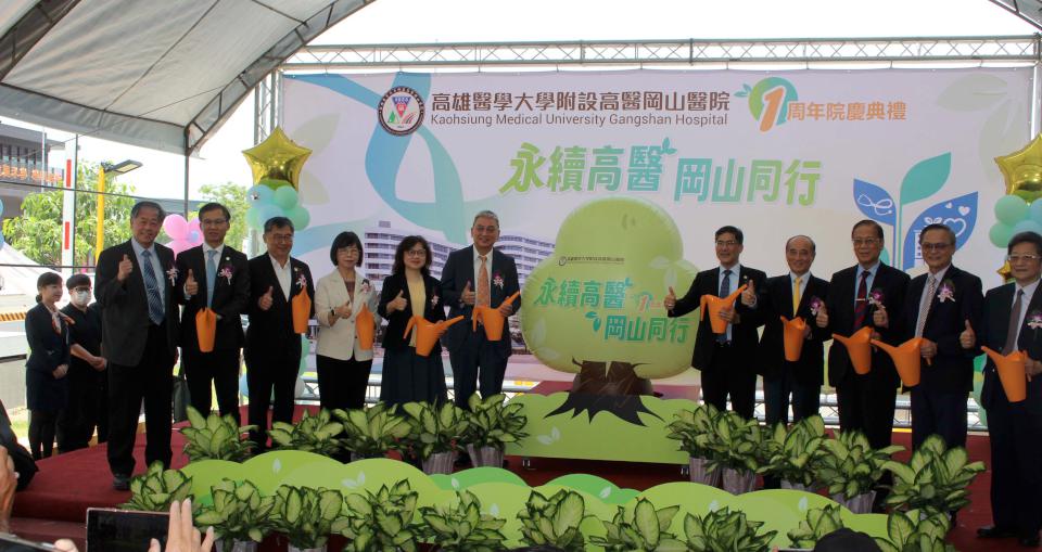 高醫岡山醫院5月8日舉行「高醫永續•岡山同行」1週年院慶典禮,高醫岡山醫院院長黃炫迪、前立法院長王金平、健保署高屏業務組組長林淑華、高雄醫學大學董事長陳建志、副校長林志隆、高醫副院長吳文正等人啟動象徵生命之樹充氣球,並執壺澆灌,感謝各界支持,力促種子茁壯長成大樹,岡山國小舞蹈隊「勁歌熱舞、閃耀岡山」開場演出炒熱氣氛,黃炫廸說,高醫醫療體系秉持滿足各地需求理念,擇定高雄捷運北機廠旁空地建院,深耕大岡山地區醫療服務,回顧創院歷程,如同種子發出新芽,長成挺拔堅實生命樹,守護在地民眾健康。