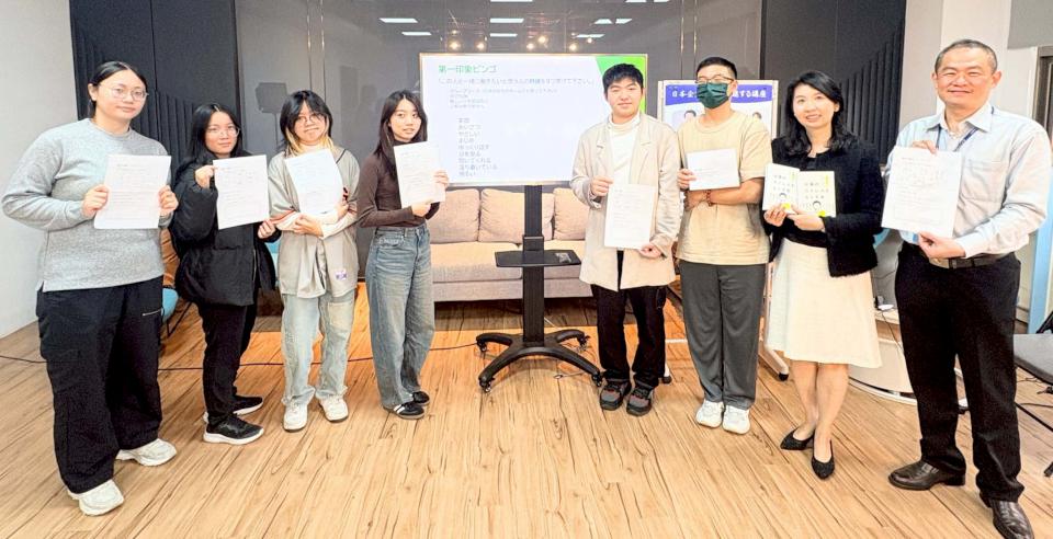 高市義守大學應用日語系邀請日本鹿兒島電視主播齋藤晶子講授企業理解與職場溝通專題課程,舉例自身實務經驗,深入分析日本企業文化,並透過情境引導,鼓勵學生盡情展能,強化就業競爭力。課程還結合賓果遊戲,轉化面試變身可反覆練習學習體驗,呼應讓學習發生在行動中理念,另企業社長濵田龍太郎驚喜現身,透過視訊連線與學生交流。台日經貿文化交流協會理事長張瑞雄也與學生分享產業趨勢與國際職場現況。
