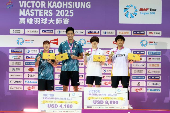 2025高雄羽球大師賽9月23日至28日在高雄巨蛋體育館舉行,15國、287名好手同場競技,角逐第三屆Spuer100冠軍及獎金,經6天鏖戰,女單冠軍奧原希望、亞軍明地陽菜、男單冠軍王柏崴、亞軍帕尼查彭.提拉拉薩庫、混雙冠軍古賀輝與今井優步、亞軍吳軒毅與楊筑云、女雙冠軍平本梨梨菜與石川心菜、亞軍鈴木陽向與山北奈緒、男雙冠軍熊谷翔與西大輝、亞軍蘇敬恒與吳冠勳,高市選手力保男單金牌、混雙及男雙銀牌等獎牌留在家鄉。