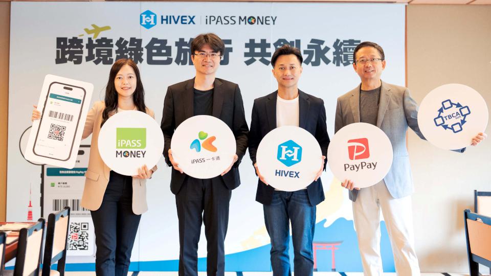 PASS一卡通票證攜手美商鏈通科技台灣(TBCASoft TAIWAN)合推跨境行動支付服務,iPASS一卡通總經理鄭鎧尹(圖左二)、美商鏈通科技商務發展總經理陳思維(圖右二)、一卡通業務開發群副總許茹嘉(圖左一)、美商鏈通科技技術及專案管理副總張元祥(圖右一)等人見證誌慶,即日起使用一卡通 iPASS MONEY APP掃描日本店家立牌QR code或向店員出示APP日本版行動支付碼,輕鬆完成跨境交易。
