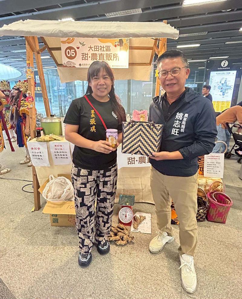 高市農業局「雄讚農市集 GOLDEN VILLAGE feat. Kaohsiung」8月30日及31日在台鐵高雄車站下沉式廣場舉行,邀集六龜、甲仙、旗山、杉林、內門、梓官、大樹等區展售,山茶、蜂蜜、苦茶油、白地瓜、手作陶藝、新鮮水果等農特產及加工品,同步安排翎官將首、街頭藝人等精彩演出,單筆消費滿399元可兌換扭蛋一顆,內含市值百元精美好禮,每天限量150份,換完為止,指定時段搶購 5折至88折,農業局長姚志旺說,鼓勵農村社區攜手盤點地方資源、形塑特色,朝向永續發展邁進。圖/農業局提供、文/高培德