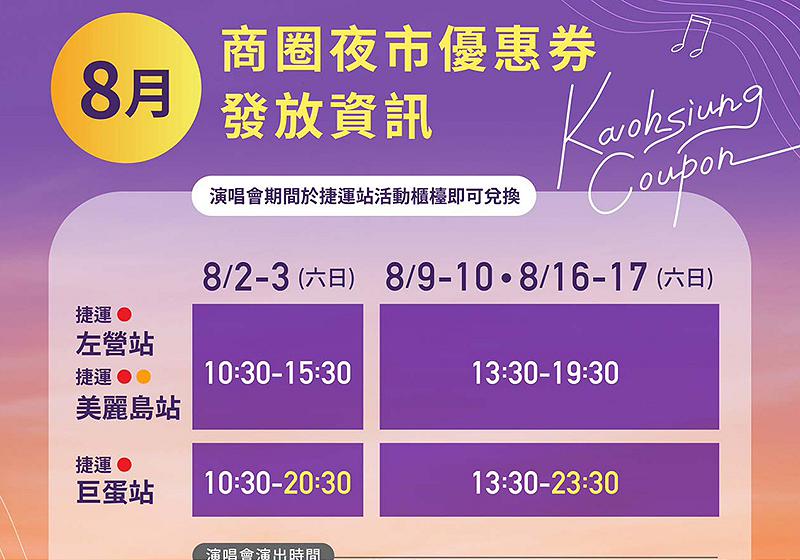 高市8月喜迎3大型演唱會 經發局續推商圈夜市優惠券加碼享獨家好康