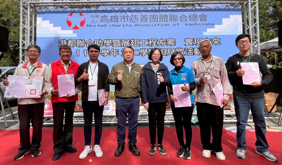 社團法人高市慈善團體聯合總會港都聯合助學暨展翅工程服務方案114學年度第2學期相見歡活動1月30日在澄清湖風景區舉行,195名經濟弱勢家庭學生獲頒助學金234萬元,高市社會局長蔡宛芬頒狀感謝高市慈總理事長江慶隆、認助個人及單位,高市慈總85年首推港都聯合助學方案,號召企業、團體及個人認助,根據統計,截至114學年第2學期,媒合助學金92842775元,嘉惠9419名經濟弱勢學生。頒獎儀式後安排獲獎學生與認助單位及個人分組烤肉聯歡,過程穿插驚喜抽獎增添樂趣。圖/社會局提供、文/高培德