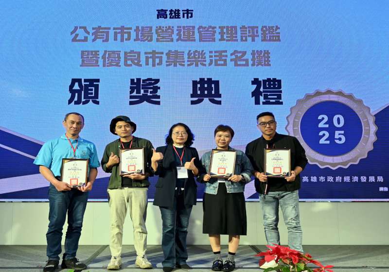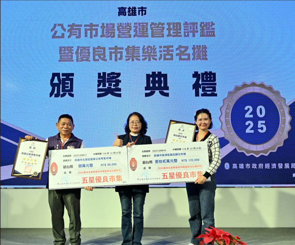 114年經濟部優良市集暨樂活名攤成績揭曉,高市龍華市場蟬聯五星優良市集,旗后觀光市場晉升五星,國民市場國民魚丸料理全台唯2、南部唯一獲頒五星金賞樂活名攤,高市五星及四星樂活名攤達52個,相較113年成長逾4成,還有18處優良市集及166個樂活名攤通過評選,高市經發局12月9日舉行高市市場環境營運管理評鑑暨優良市集樂活名攤頒獎典禮,主秘林玉霞主持,公有零售市場、攤販集中場管理組織代表及攤商參與。