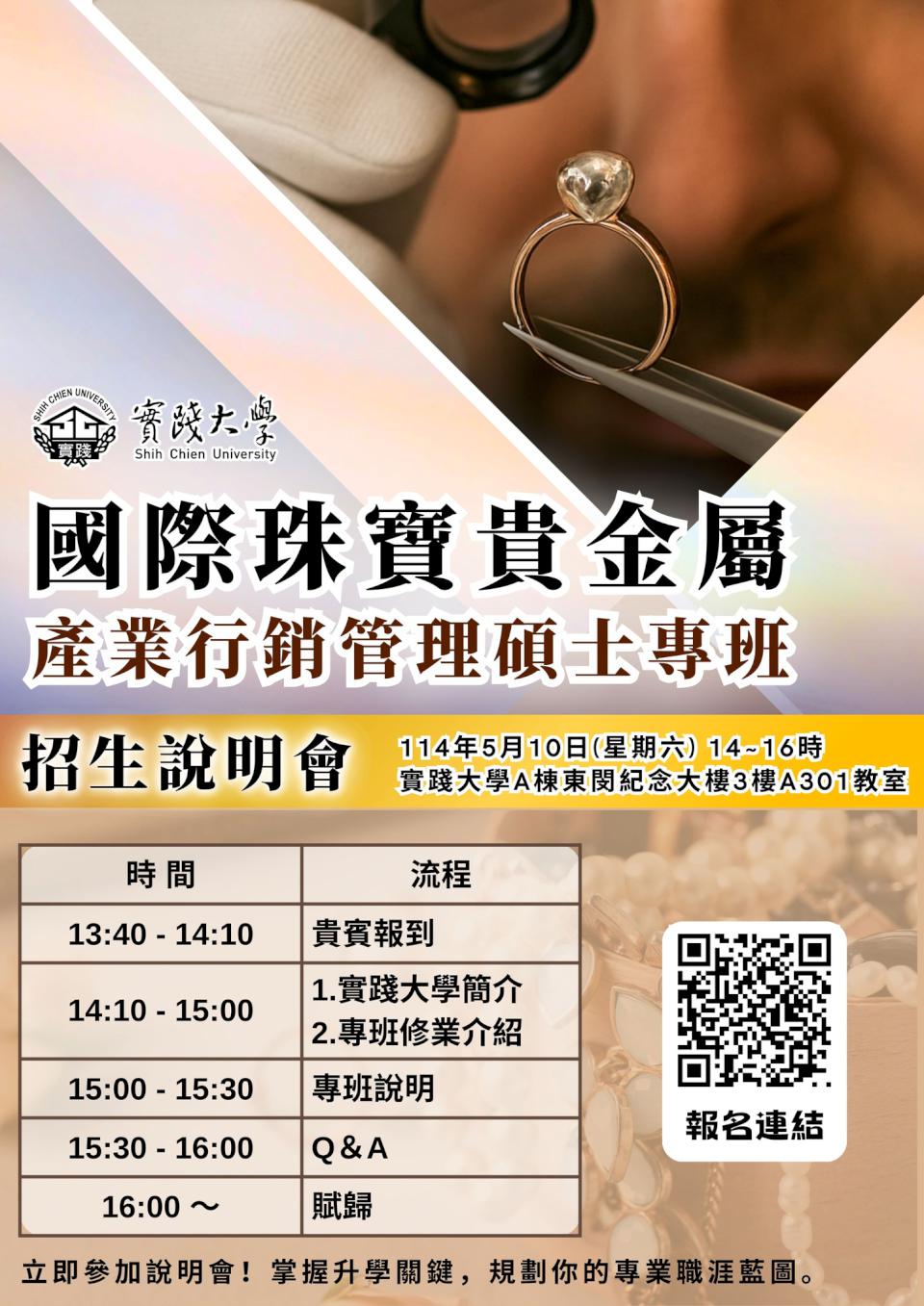 國際珠寶貴金屬產業行銷管理碩士專班台北實踐大學開課 5月26日下午5點網路報名截止