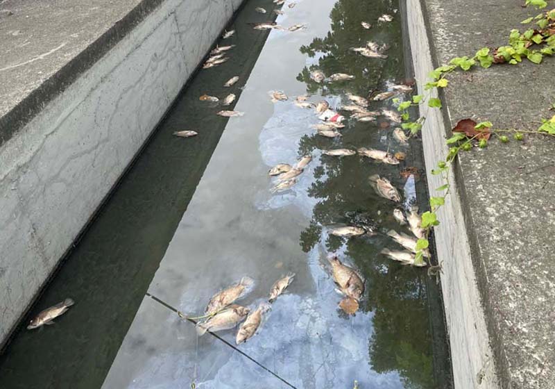 高市大寮區光明路三段農田灌溉渠道疑遭廢水污染魚群暴斃 環保局採樣送驗釐清