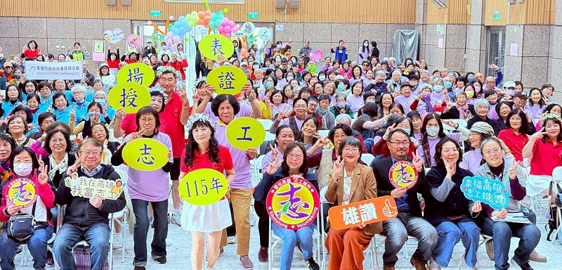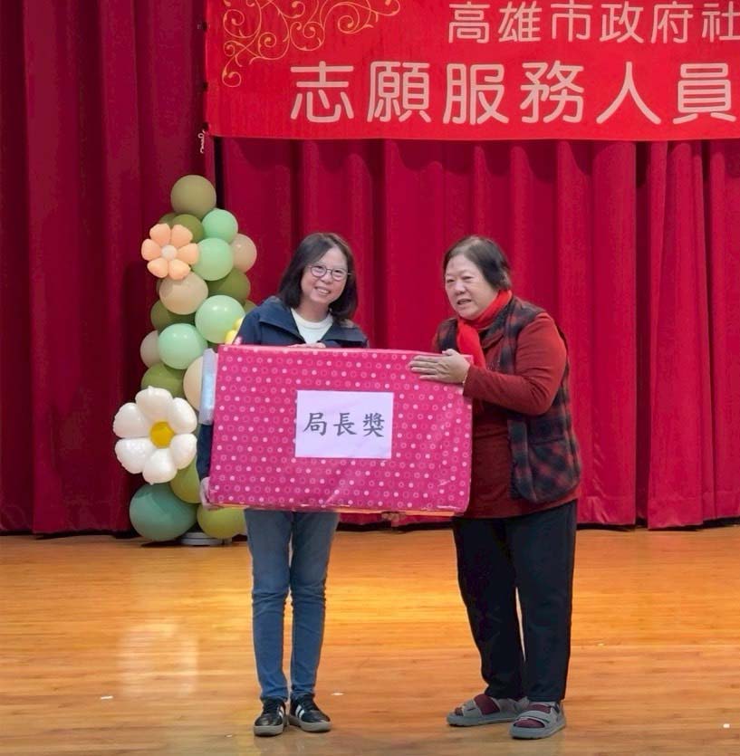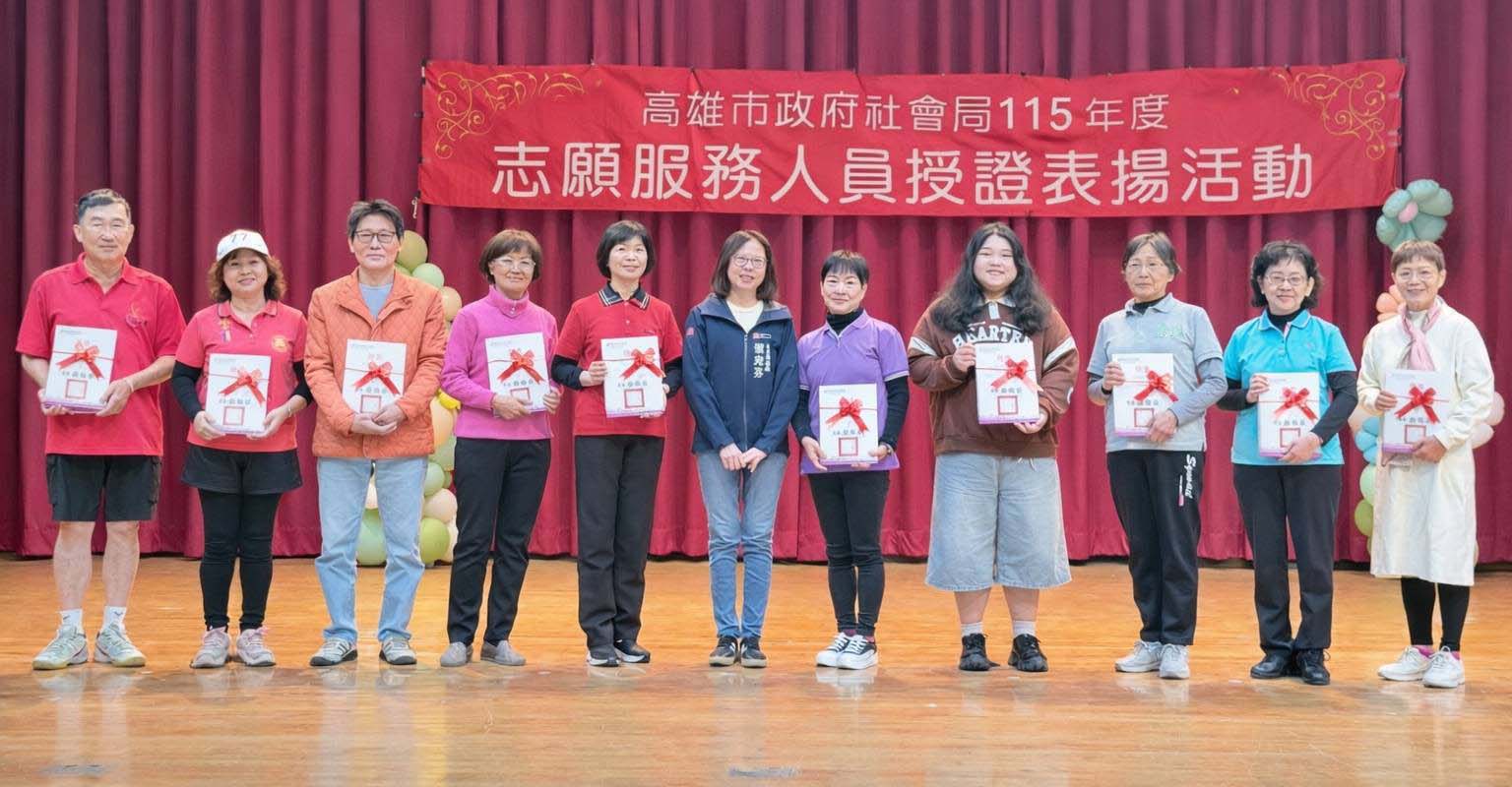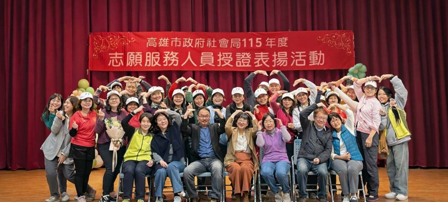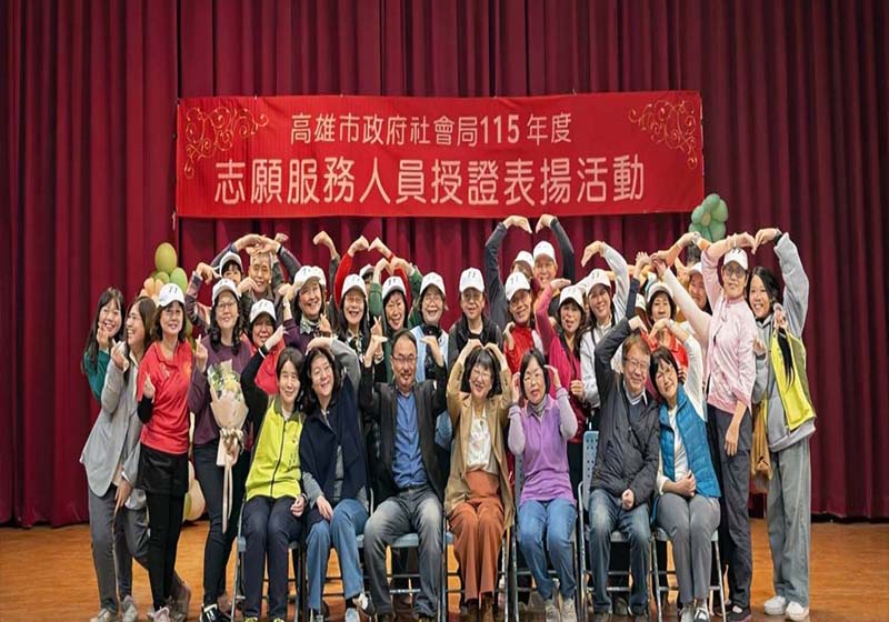 高市社會局115年志願服務人員授證表揚典禮1月3日在市府鳳山行政中心舉行,由社會局長蔡宛芬頒授志工聘書,並致贈李明正、涂有志、陳素珍等3人志工服務40年榮譽獎,志工獻唱《快樂志工》、《異域風情快樂組曲》、《我們都是一家人》等組曲接力炒熱氣氛,蔡宛芬說,志工發揮專業知能及豐富人生閱歷應用社福活動及個案服務,大幅提升服務品質與效率,貢獻社會卓著,全市現有逾11萬名志工,低調耕耘、無私奉獻,溫情傳遞社福政策,期待更多新血加入,落實全民投身志願服務願景。
