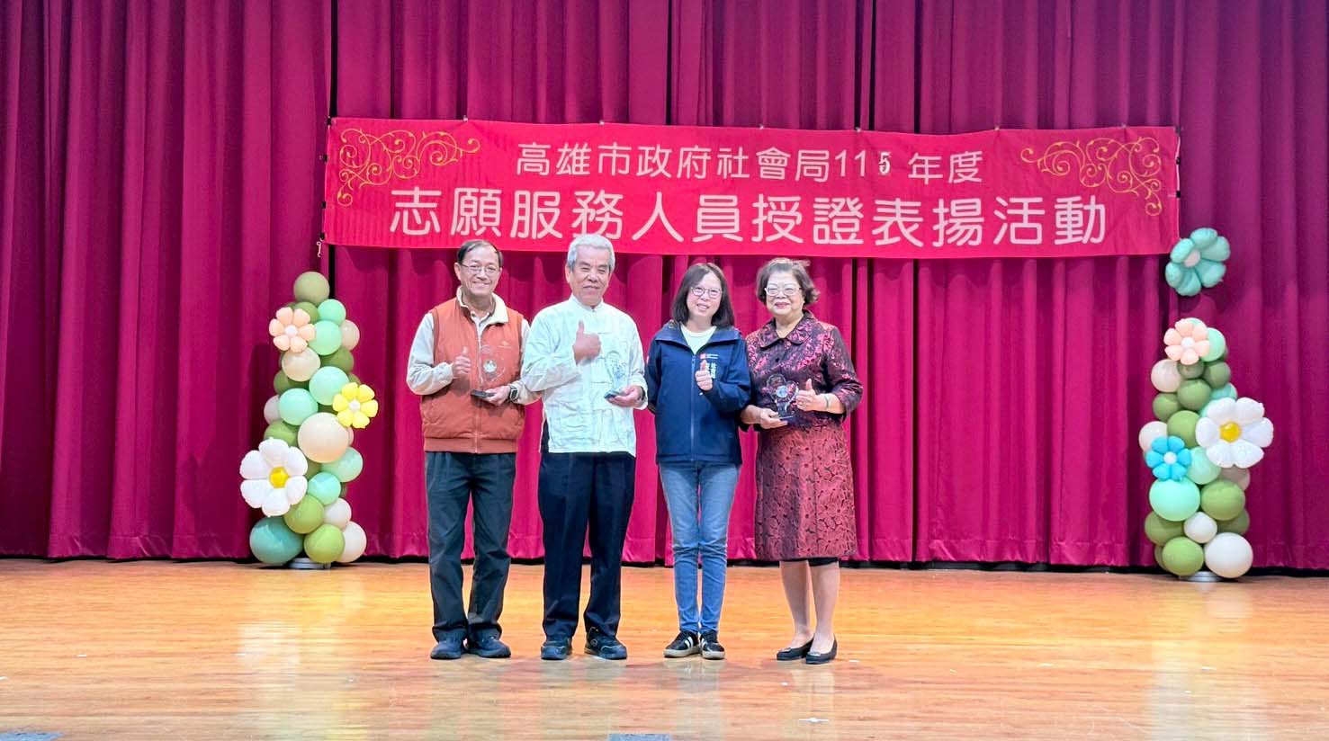 高市社會局頒授115年志工聘書 贈李明正、涂有志、陳素珍服務40年榮譽獎