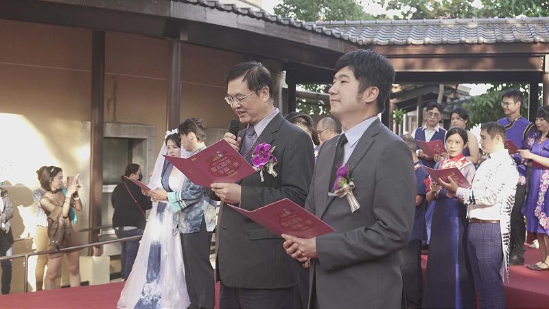 客委會雨豆樹步道裝飾油紙傘 副市長羅逹生證婚21對新人