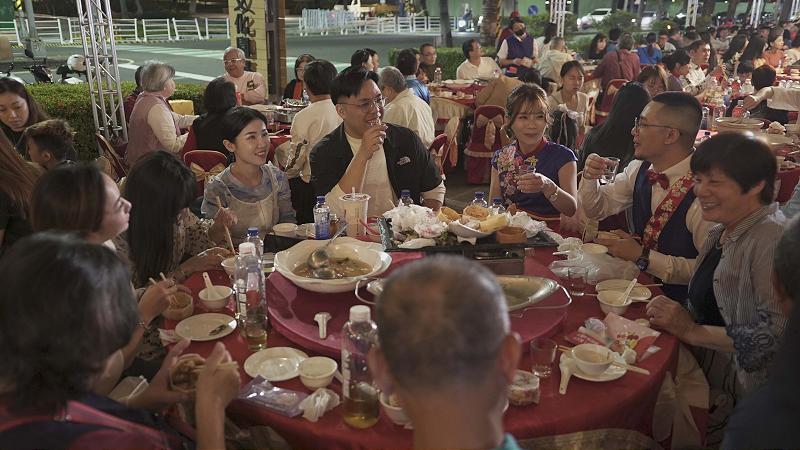 高市客委會主委楊瑞霞說,新人與來賓熱情感染大家,雨豆樹步道作為紅毯,油紙傘象徵圓滿及期待新人撐起幸福未來,提醒大家互相尊重、扶持,也祝福多子多福、早生貴子。晚間席開 56 桌客家喜宴商請美濃總舖師阿海師劉春樹掌廚,端出五福大拼盤、筍乾扣肉、客家小炒、酥炸野蓮、豐冬瓜高麗菜、老蘿蔔雞湯等佳餚款待新人及賓客。現場同步規劃音樂會、市集、客家美食及親子手作體驗等活動。圖/客委會提供、文/高培德