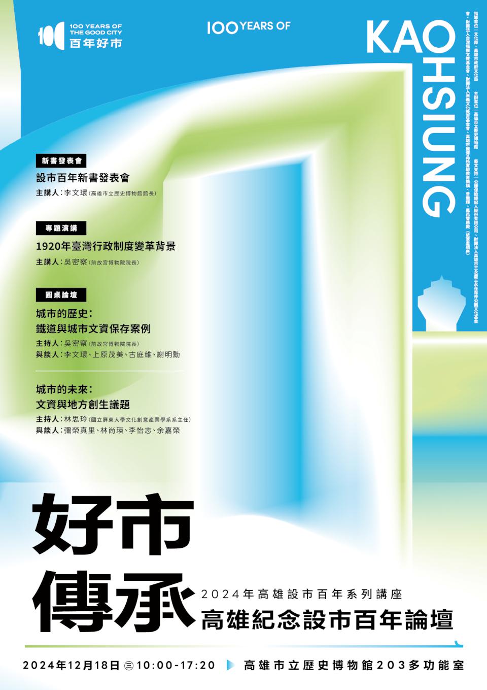 高史館12月18日「好市傳承─高雄紀念設市百年論壇」 官網開放預約報名