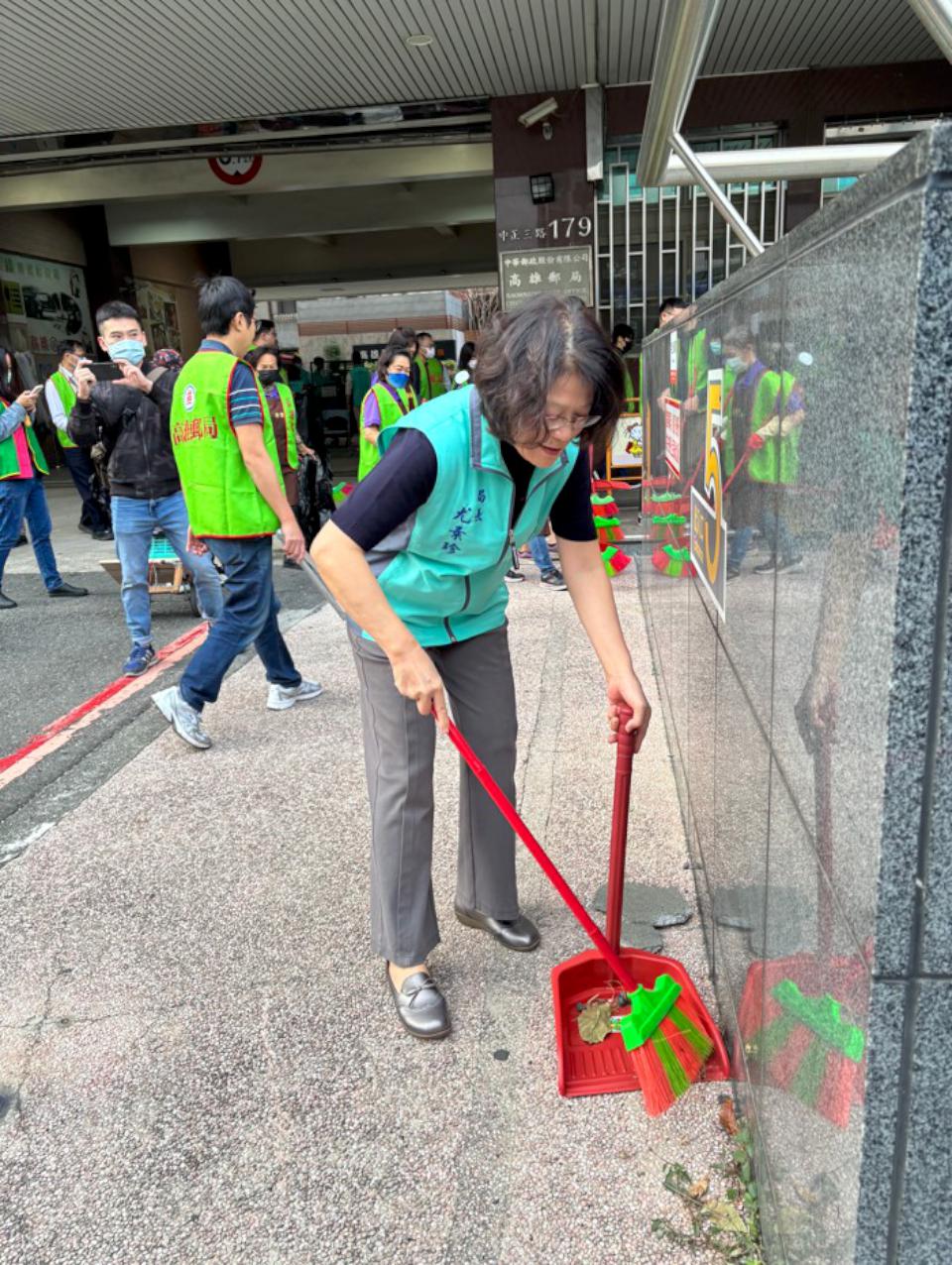 中華郵政高雄郵局1月30日舉行115年「高郵送暖、友愛社區」活動,清掃辦公廳舍周邊50公尺街道、移除積水容器、消滅病媒蚊孳生源等,範圍涵蓋中正三路、南華路、球庭路、復橫一路、林森一路等路段,高雄郵局局長尤素珍、東坡里里長李虹曇等人參與。圖/高雄郵局提供、文/高培德