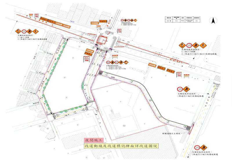 工務局表示,考量工區鄰近國道1號中正交流道採夜間施工,路口設置交維並專人引導車流,期間透過電台加強宣導改道訊息,籲請各界諒察施工不便,工程洽詢吳玟毅0973-885-268。圖/新工處提供、文/高培德