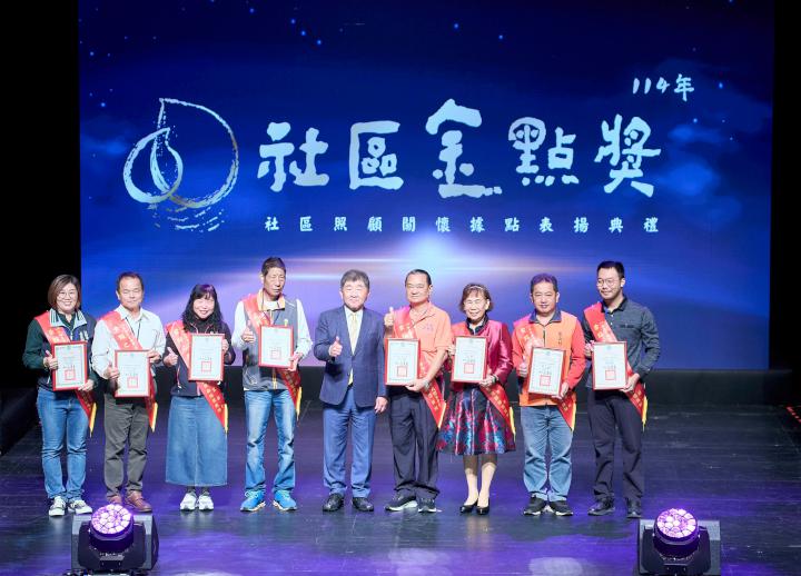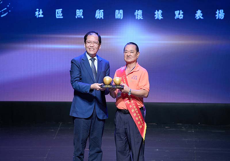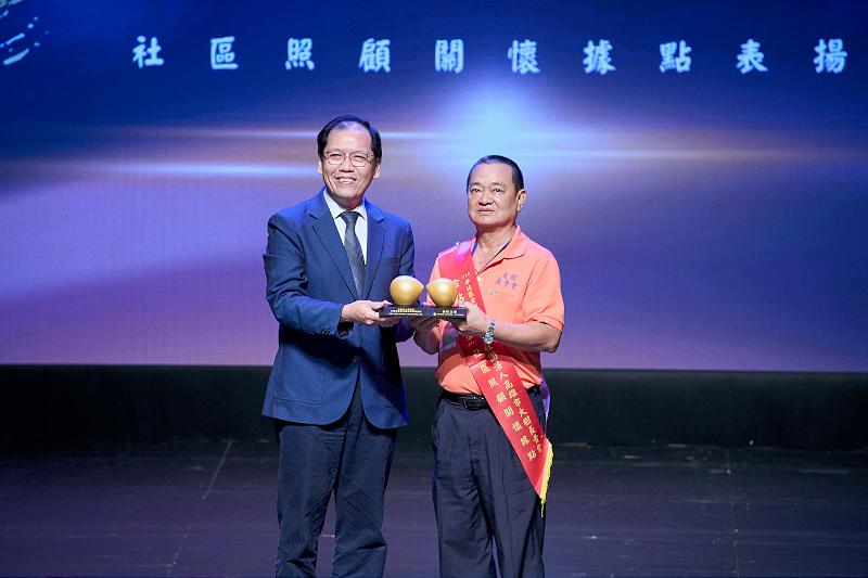 高市大樹長青會榮膺衛生福利部社區照顧關懷據點社區金點獎,接受社家署署長周道君表揚。