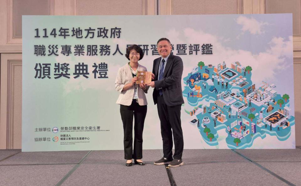 高市勞工局整合勞動部、市府局處及各界資源,設置職災勞工主動服務單一窗口,職災專服員提供醫療診治、心理支持、勞工、社會福利、權益諮詢等服務,成果榮膺勞動部直轄市及縣市政府辦理職業災害勞工協助事項評鑑優等,勞工局主秘許文瓊(圖一左)10月7日代表接受勞動部政務次長李健鴻(圖一右)表揚。