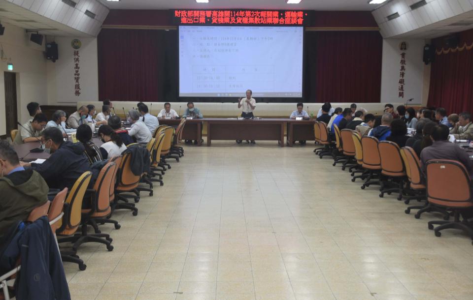 財政部關務署高雄關12月4日舉行114年第2次報關業、運輸業、進出口業、貨棧業及貨櫃集散站業聯合座談會,副關務長高丁財等人列席,高市船舶日用品商業同業公會、國際輪船商業同業公會、報關商業同業公會、船務代理商業同業公會、航空貨運承攬商業同業公會、倉庫商業同業公會、中華民國貨櫃儲運事業協會、台灣中油、關貿網路、農業部農業科技園區管理中心等單位代表約60人與會,會中同步宣導海關徵收規費電腦化、關港貿單一窗口線上申報異動、離職員工作業、報關業個人資料檔案安全維護、輸美國貨產地聲明書補送效期、港口船舶用品轉口入境登錄艙單、政風業務及反詐騙等。圖/高雄關提供、文/高培德