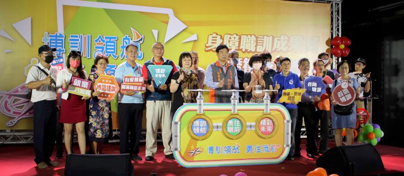 高市勞工局博訓中心8月20日在駁二藝術特區蓬萊B4倉庫辦理「博訓領航‧勇往職前」身障職訓成果展暨徵才活動,勞工局長周登春、副局長陳石圍、博訓中心主任許坤發等人啟動舞台道具宣布活動起跑,職訓班學員設攤展現訓練成果,並規劃手作體驗、創意競賽、驚喜抽獎、視障歌手及博訓志工隊表演等系列活動,同時邀集瑞峰食品、李長榮化工、萬豪酒店、義大醫院、台灣捷康、國巨等知名企業現場徵才,媒合障友投身職場。