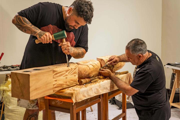 毛利工藝師與台灣青年打造首支雕刻柱,領先全台成為太平洋東岸星空羅盤,型塑國際合作、族群智慧與海洋精神文化地標。現場也放映南島航海與工藝微電影,傳達回望而行精神。