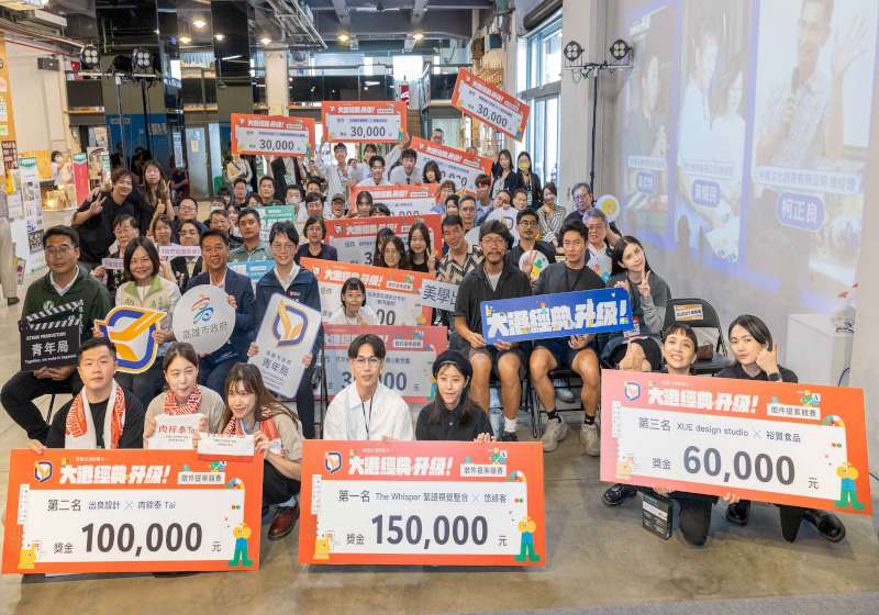 高市青年局2025年第五屆大港經典升級提案競賽決賽暨成果發表10月17日在駁二藝術特區Pinway 8號倉庫舉行,11組晉級決賽團隊經永真急制創辦人聶永真、究方社創意總監方序中、平面室設計總監李君慈等人評比,The Whisper絮語視覺整合勇奪首獎及 15 萬元獎金(圖一),出良設計與XUE design studio分獲亞軍與季軍,另評選8組佳作各獲3 萬元獎金。