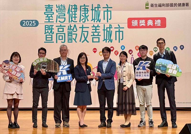 高市捷運局「輕進高雄幸福軌跡建造綠色城市」串連交通建設與生態環境,榮膺衛生福利部國民健康署114年臺灣健康城市暨高齡友善城市獎綠色城市獎。