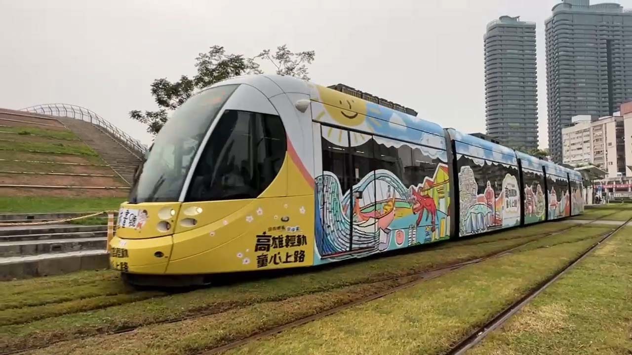 高雄捷運攜手民間團體領先全台合推《彩繪輕軌列車》活動,邀兒童及青少年彩繪最愛家鄉,列車上線營運,可利用高捷通勤助理APP查詢列車動線。圖/捷運局提供、文/高培德